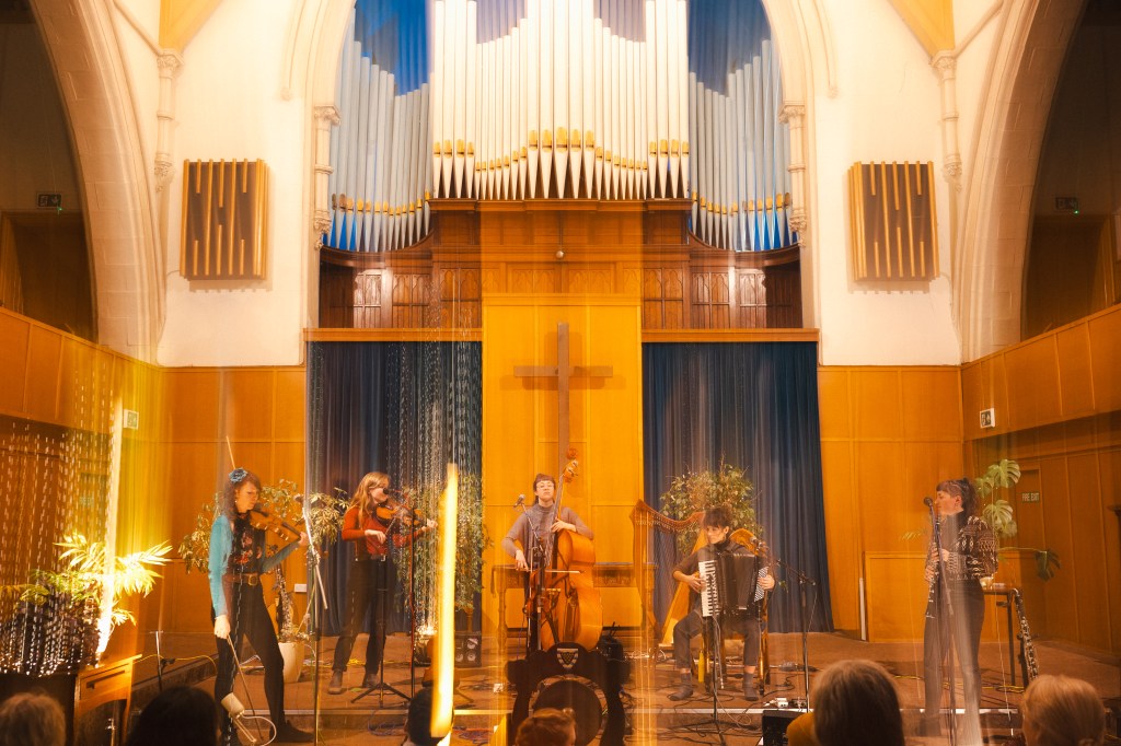 Hedera is a chamber folk project from Bristol featuring Lulu Austin (violin), Maisie Brett (violin, viola), Tamsin Elliott (accordion, harp), Beth Roberts (double bass, violin) and Isis Wolf-Light (clarinets). They perform original and traditional pieces inspired by music from England, Scotland, France, Bali, Georgia, Bulgaria, Ethiopia and beyond, translated through a prism of experimental minimalism and contemporary classical influences. Their eponymous debut album is a collection of twelve original & traditional tunes that reflect their craft as composers, tune-interpreters and collaborative arrangers (due for release in February 2026).